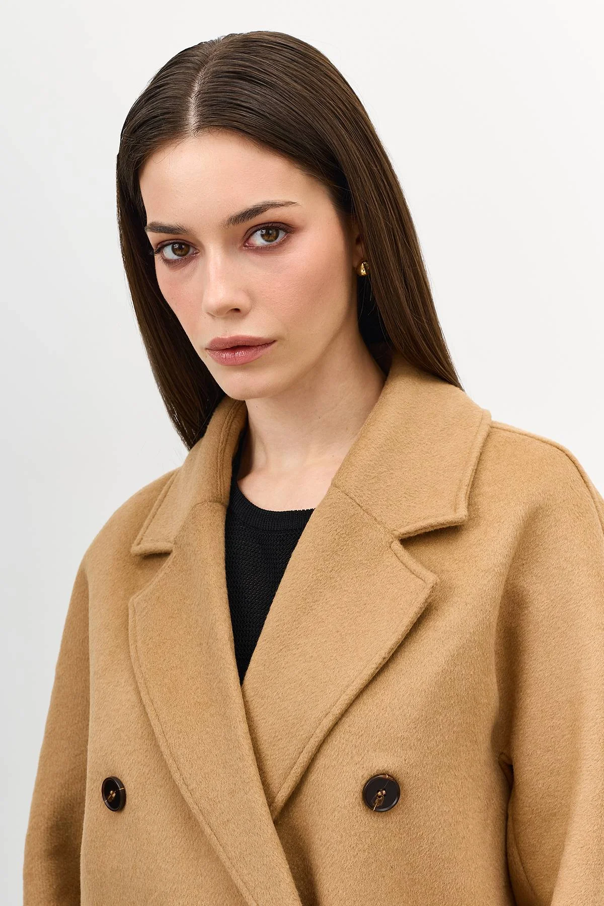 Пальто Savage 60201/2 - Элегантное двубортное пальто с английским воротником создает классический строгий силуэт. Прямой крой и два ряда пуговиц подчеркивают женственность и сдержанный стиль. Качественная ткань с добавлением шерсти обеспечивает тепло и комфорт в прохладную погоду. В комплекте палантин LBL34-348-01