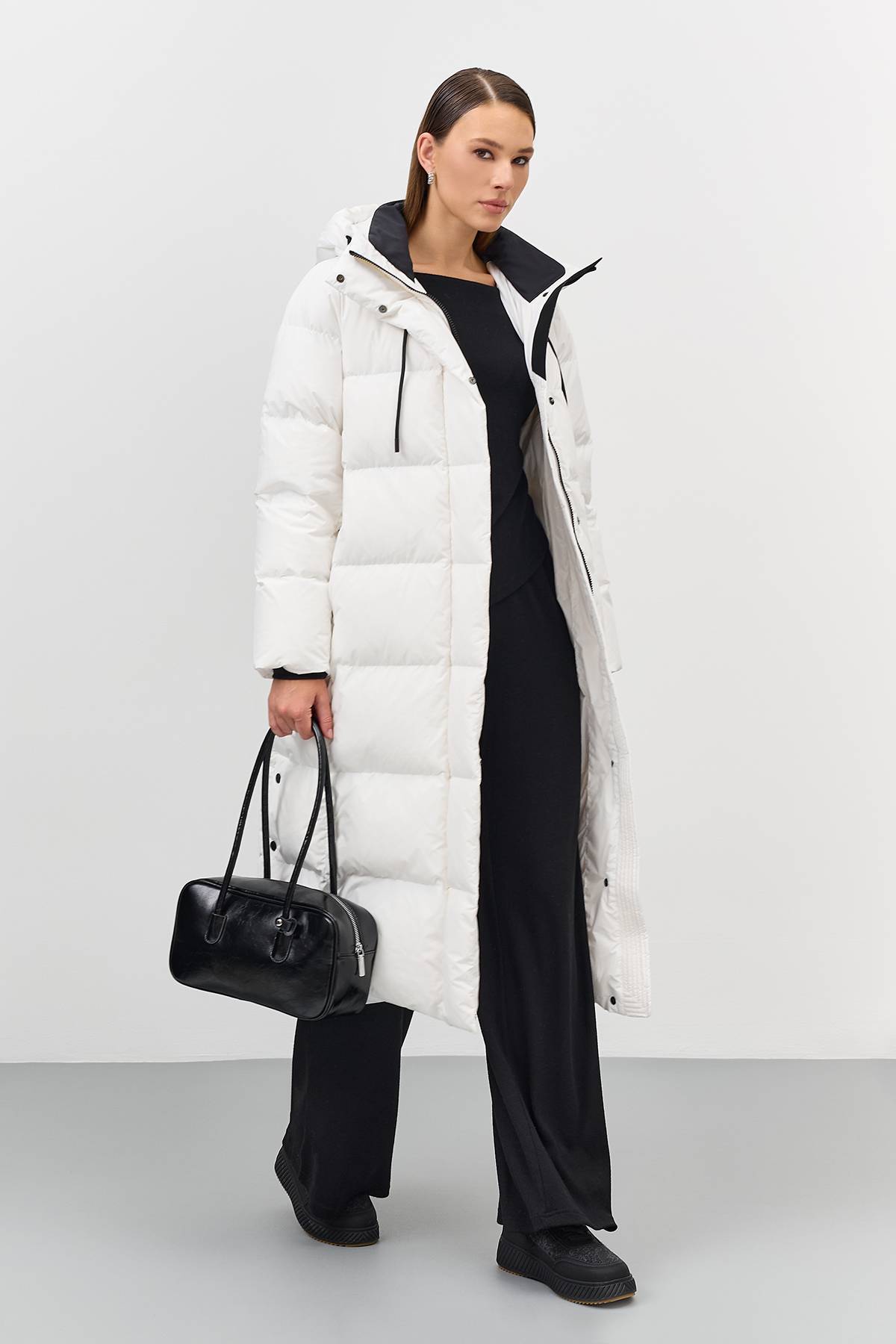 Лимитированная серия белый длинный пуховик на натуральном утеплителе и палантин, 48