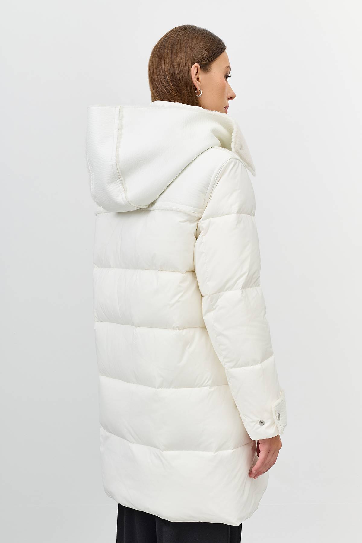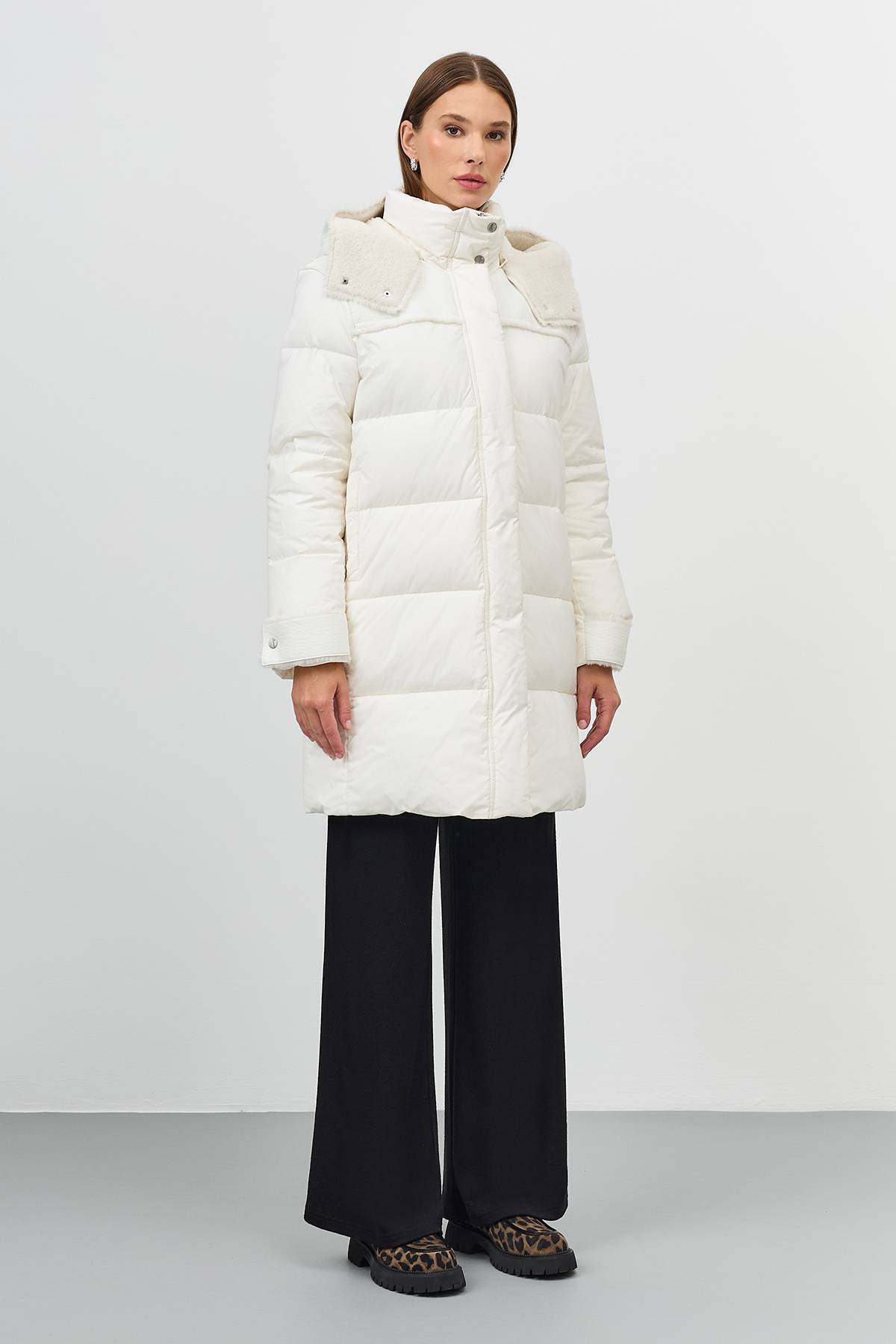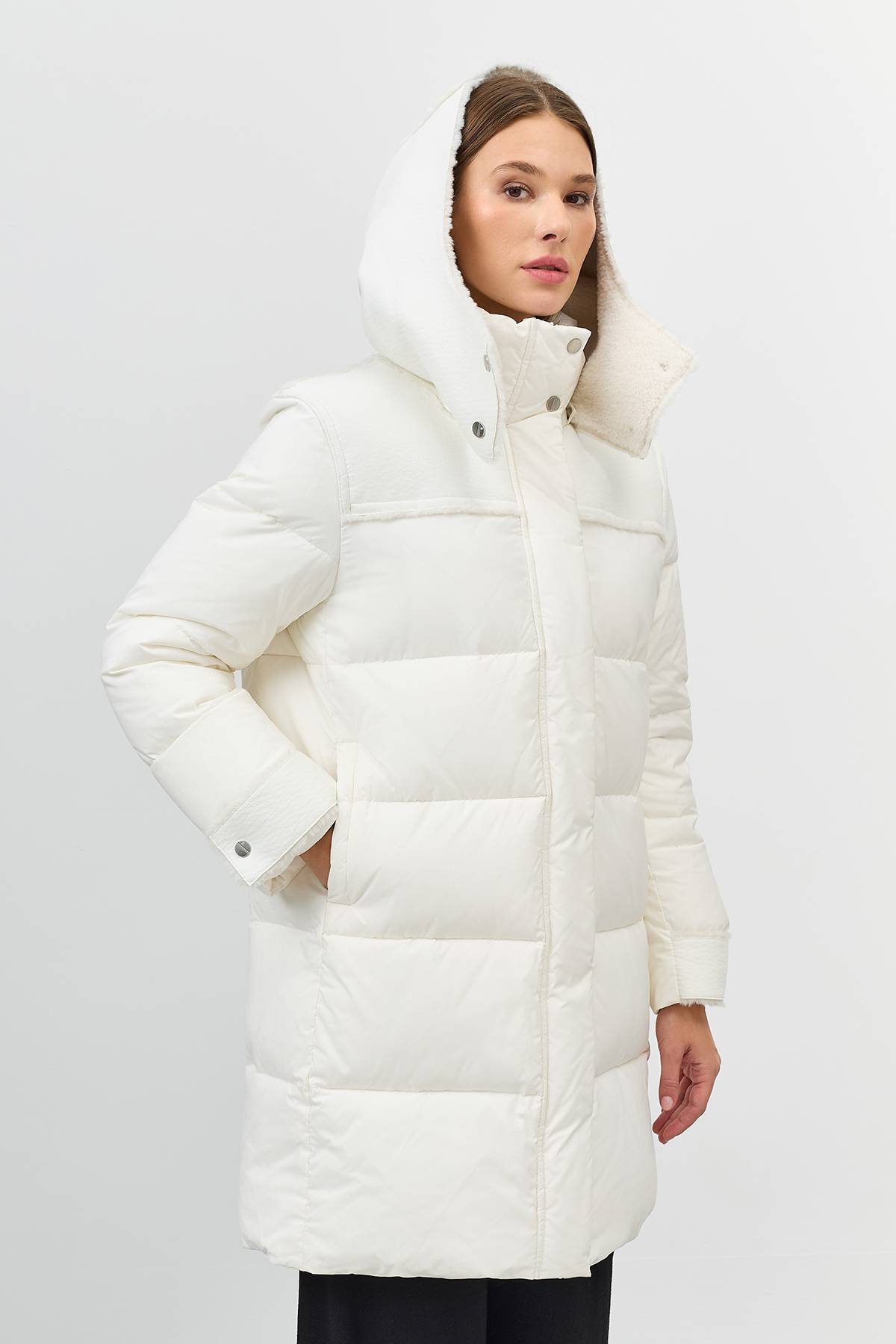 Лимитированная серия Пальто с капюшоном из искусственной овчиныс палантином, 42
