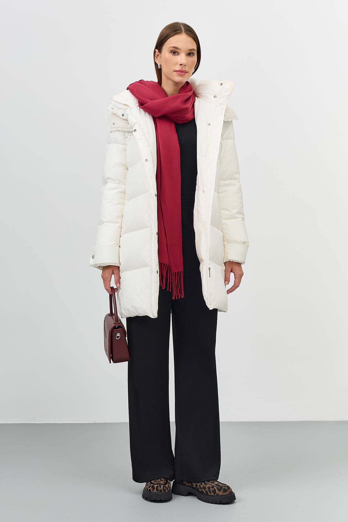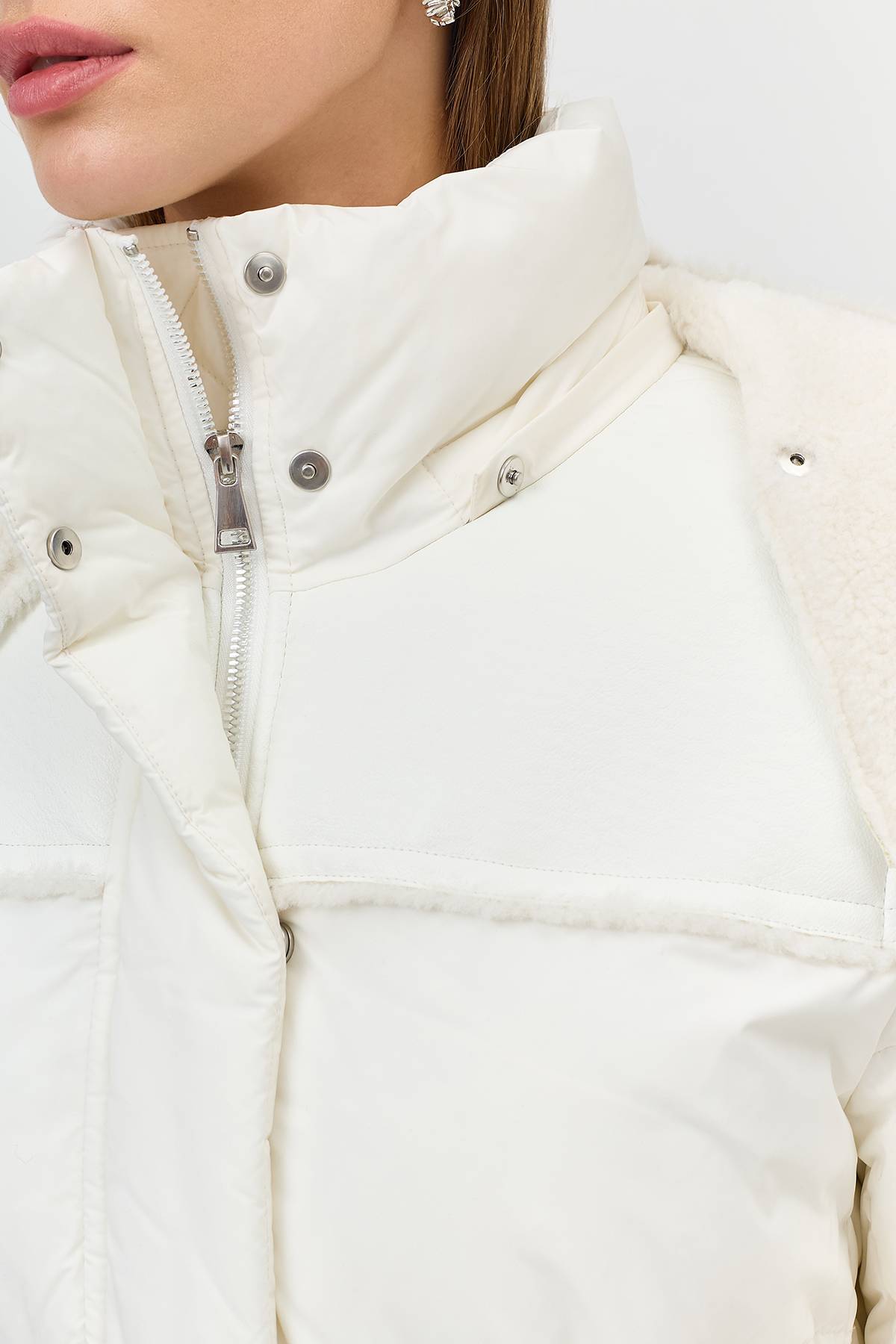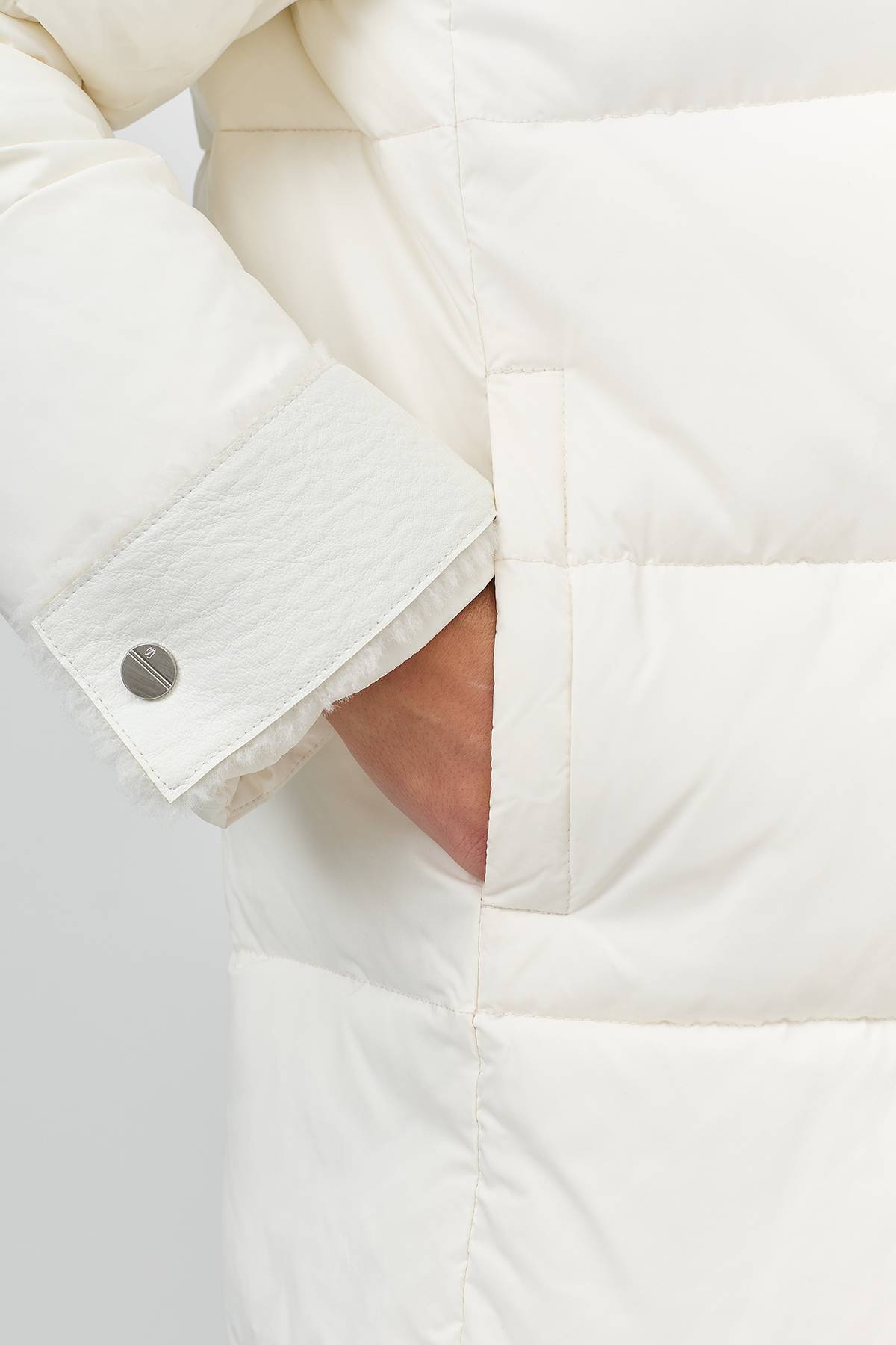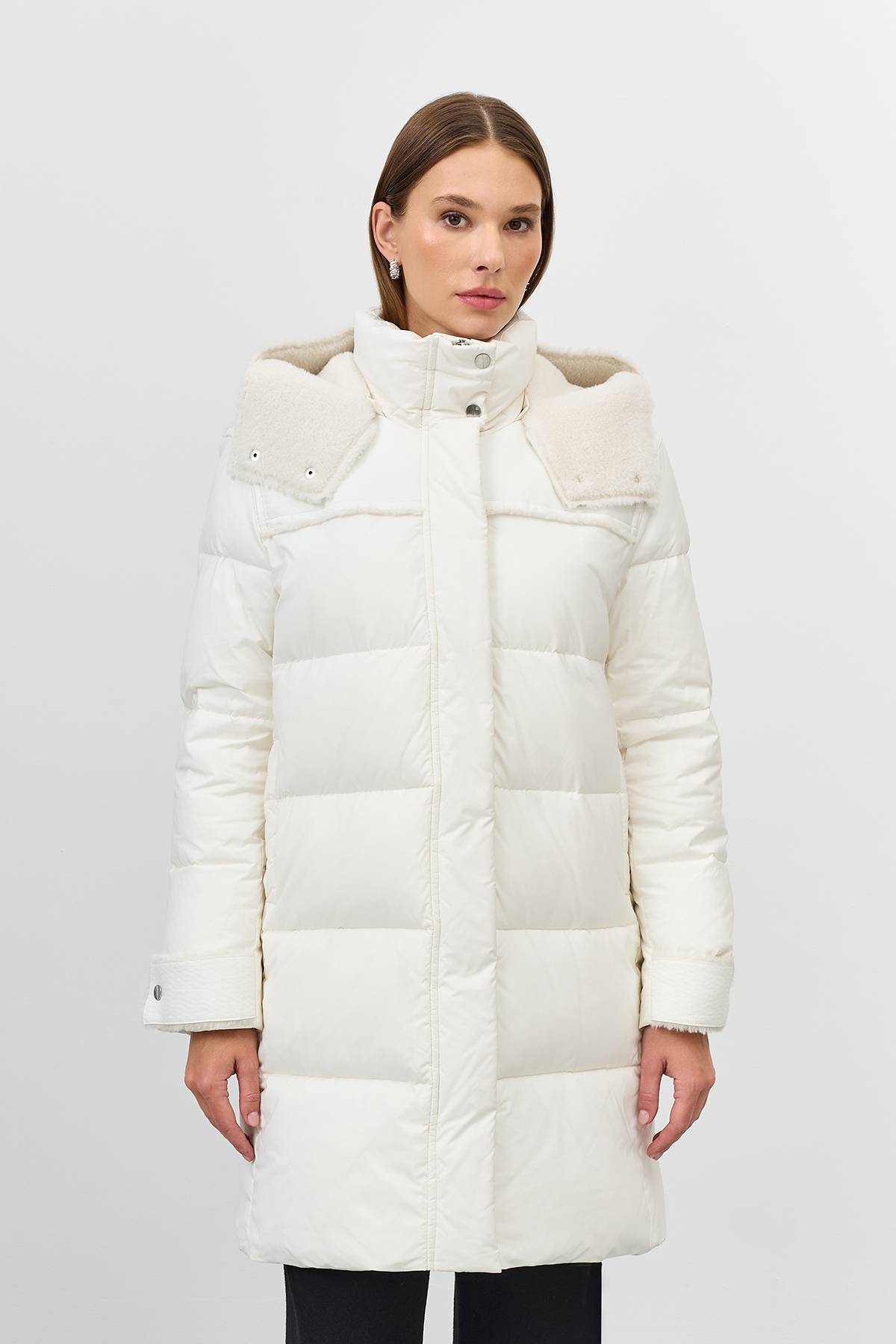 Лимитированная серия Пальто с капюшоном из искусственной овчиныс палантином, 42