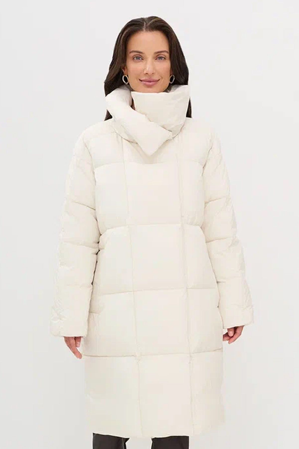 Объёмное пальто с квадратной стежкой — отличный выбор для создания стильного и современного образа. Его уникальные детали и удобство делают его идеальным вариантом для прохладной погоды. Отложной воротник, который может быть заменен на высокую стойку, дает вам возможность изменять стиль в зависимости от настроения и погоды, обеспечивая защиту шеи от холода. Спущенная линия плеча создает расслабленный, свободный силуэт, добавляя комфорт и легкость в движениях. Застежка на молнию и кнопки сочетает в себе практичность и стиль, позволяя легко управлять пальто и одновременно добавляя ему особый шарм. Удобные боковые карманы с листочками придают пальто элегантный вид. Это объёмное пальто с квадратной стежкой станет вашим верным спутником в холодное время года, позволяя создать модные и уютные образы, не жертвуя комфортом.