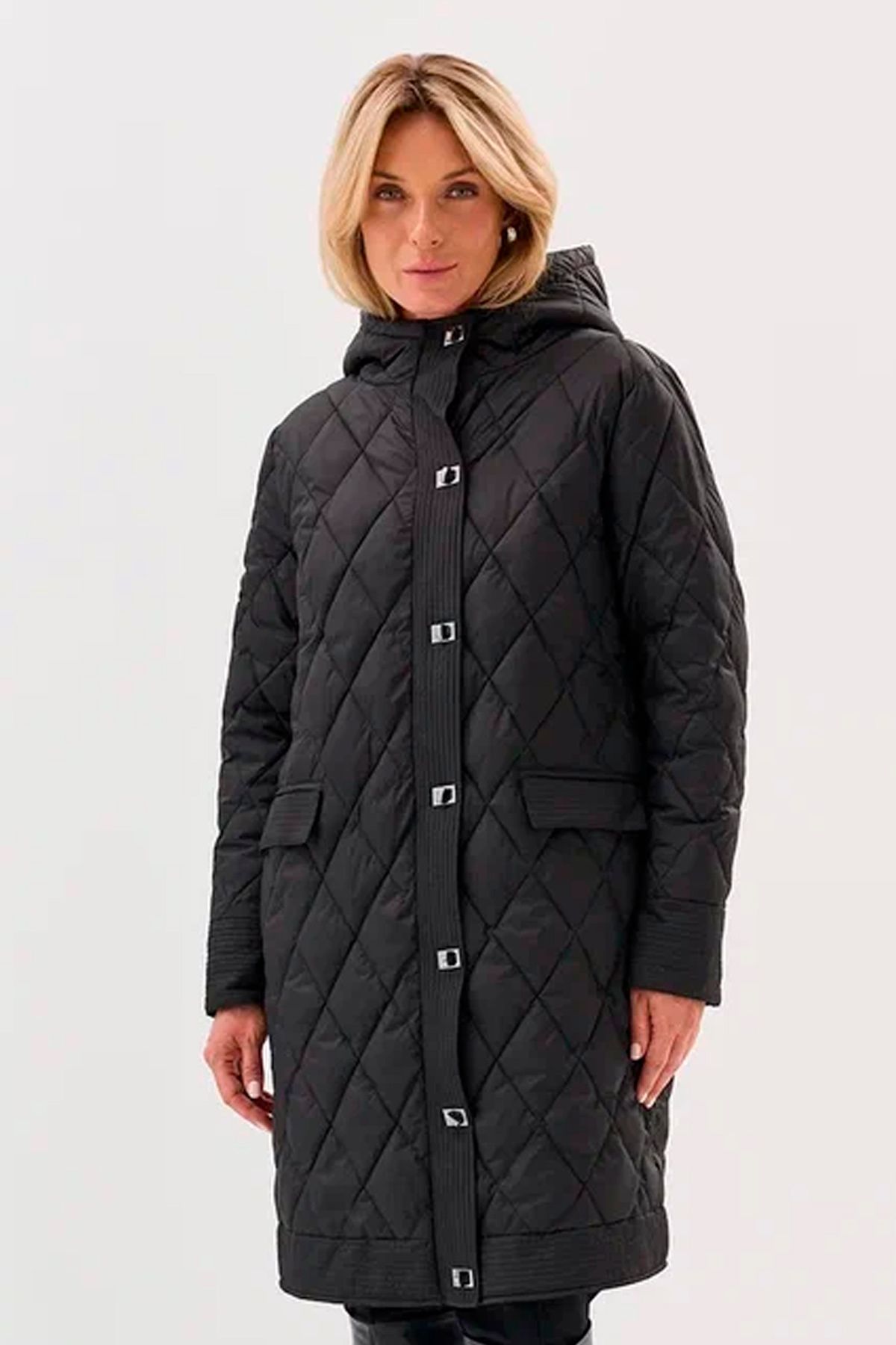 Пальто с ромбовидной стежкой и акцентными застежками, 46р