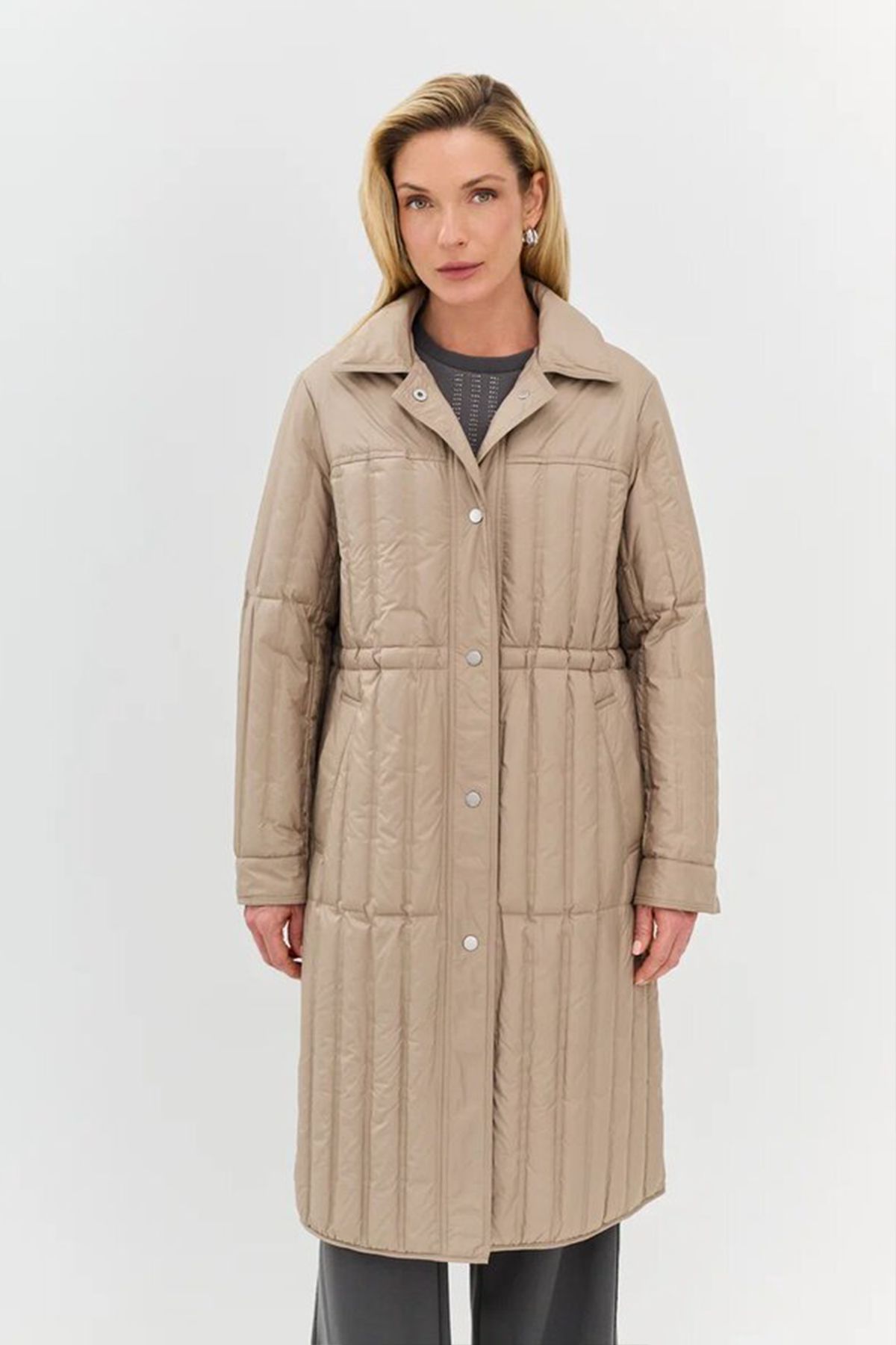 Пуховое пальто с вертикальной стежкой, 48р