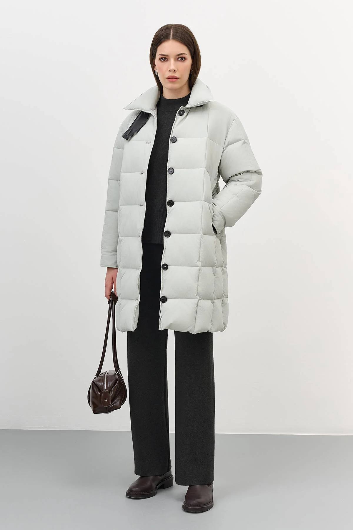 Стеганое пальто с контрастной фурнитурой, 42