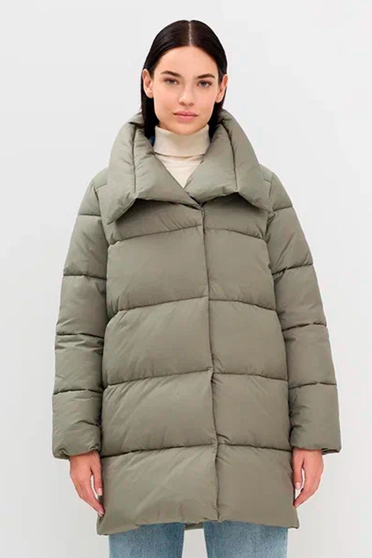 Стеганое укороченное пальто в оливковом цвете, 46р