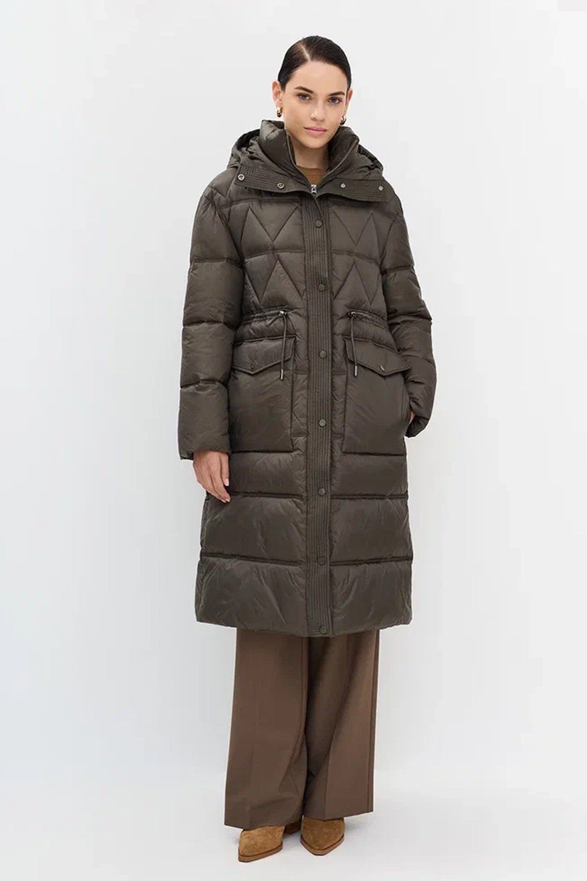 Удлиненное пальто с фигурной стежкой в цвете хаки, 46р