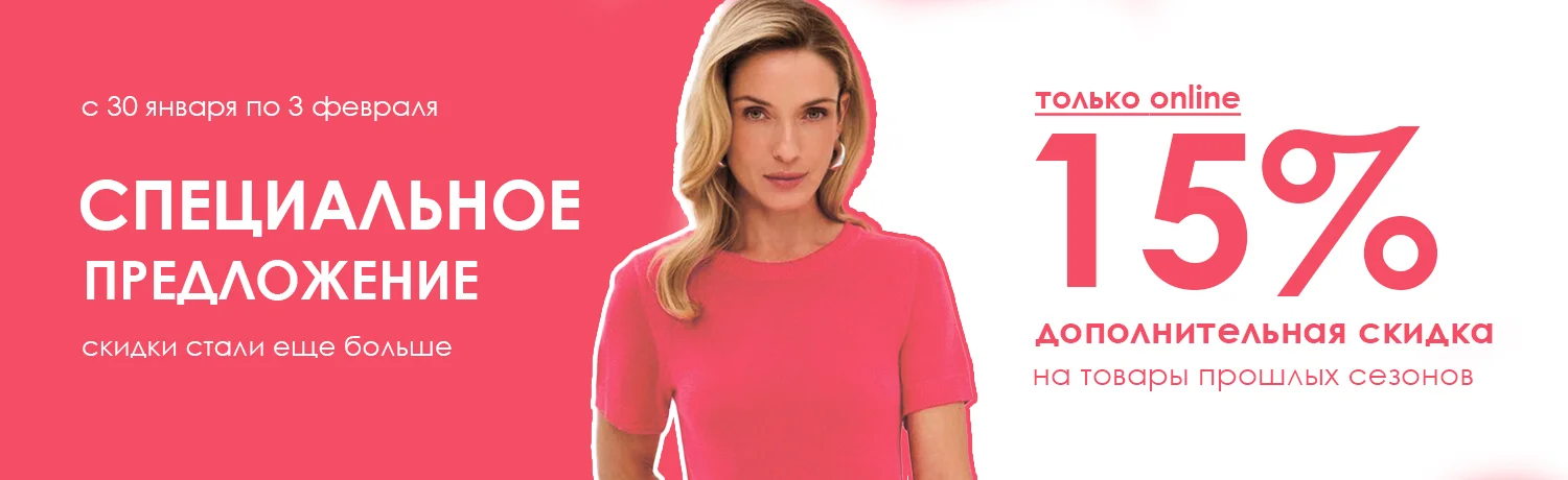 ДОПОЛНИТЕЛЬНАЯ СКИДКА –15% НА КОЛЛЕКЦИИ ПРОШЛЫХ СЕЗОНОВ